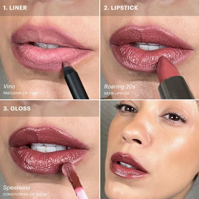 • Trys pilno dydžio priemonės, skirtos lūpų kontūrui, spalvai ir spindesiui.